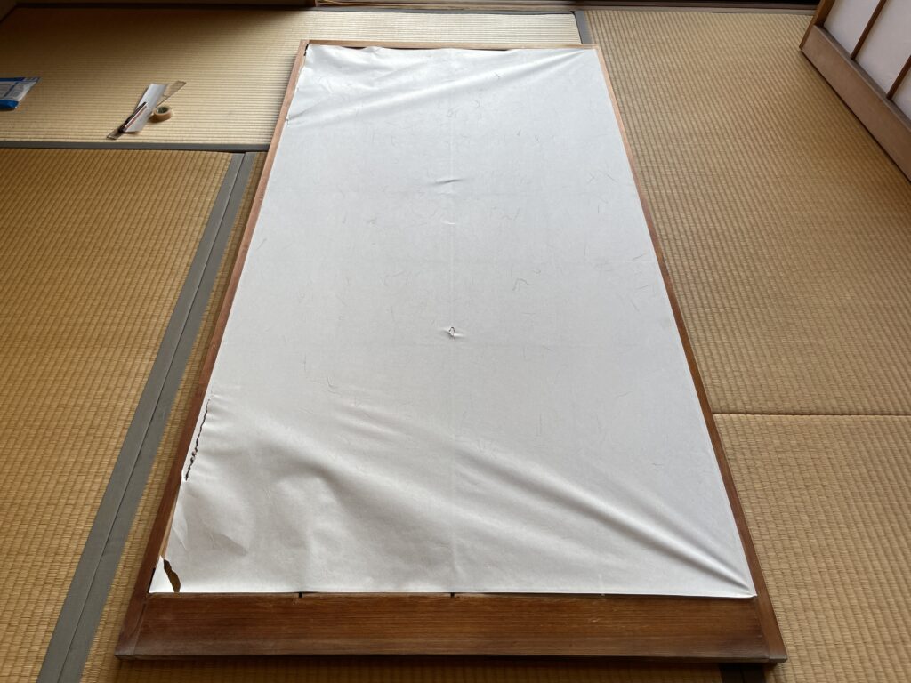新しい障子紙に貼り替えます