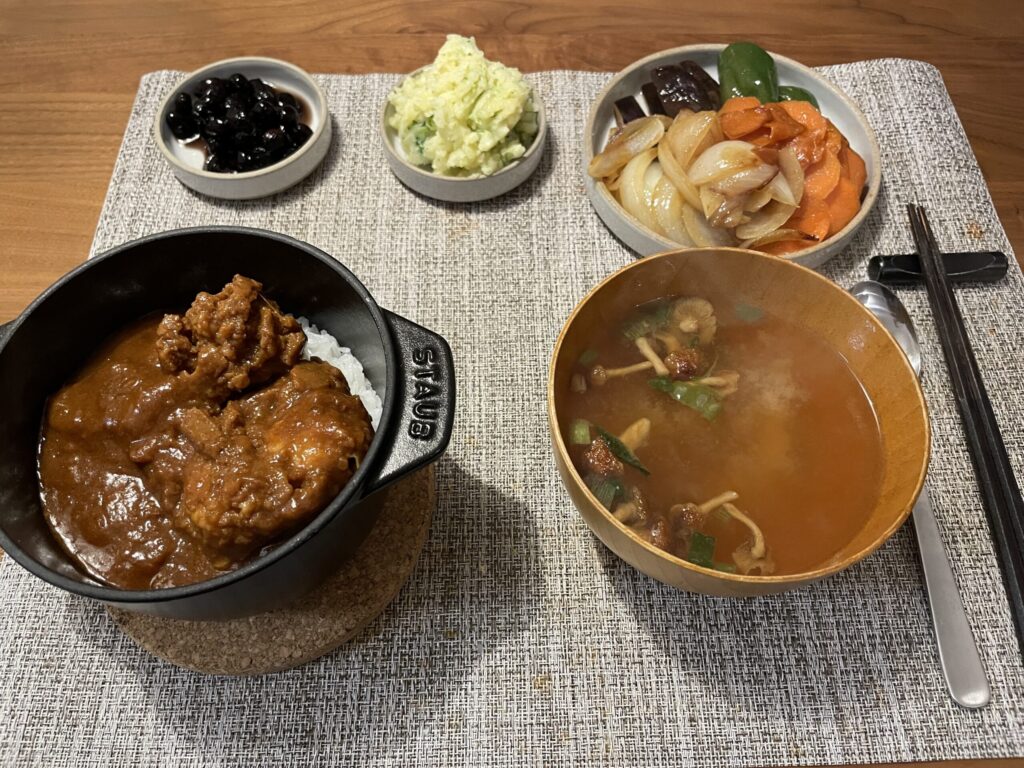 レトルトカレー・ナメコの味噌汁(フリーズドライ)