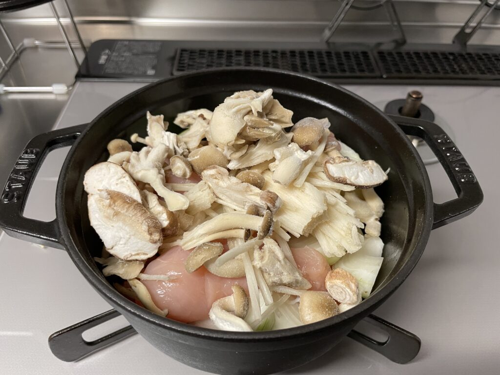 キノコ類・鳥ささみ・じゃがいも・人参・玉ねぎ