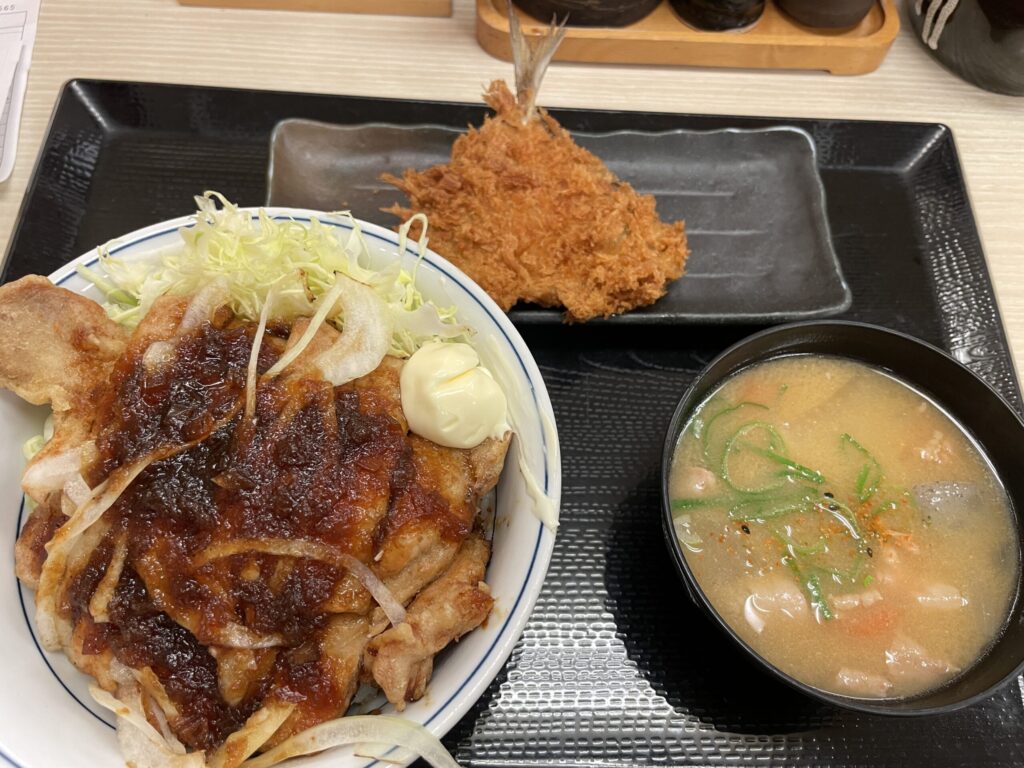 トンテキ丼とアジフライと豚汁(小)