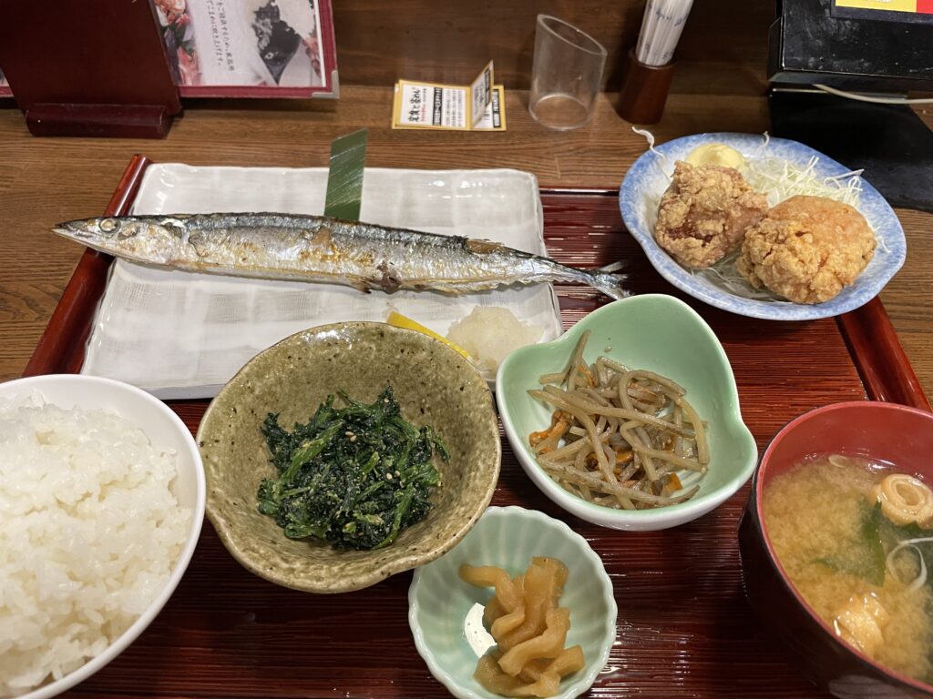 サンマ塩焼き+唐揚げ定食 ¥1290円(税込)