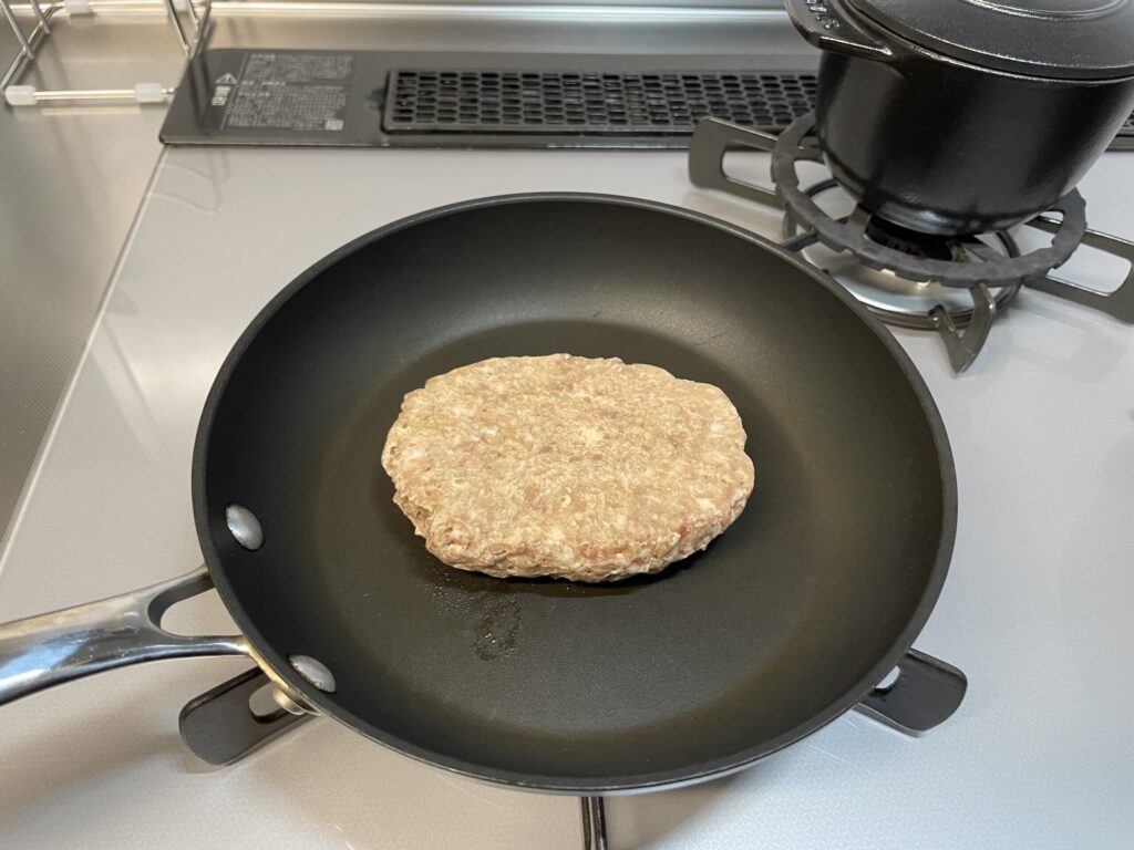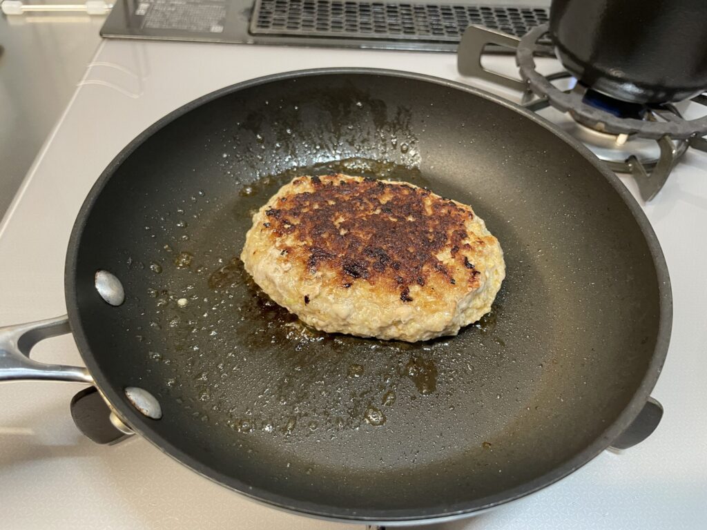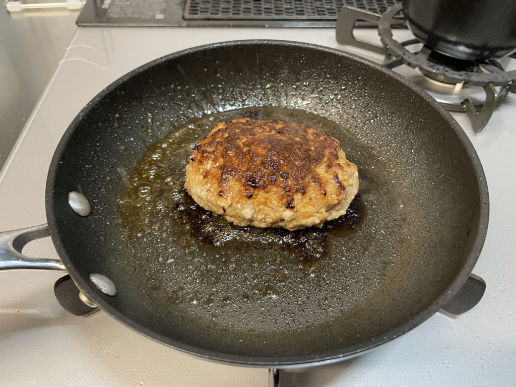 ③美味しそうな焼き色がついたらひっくり返して弱火でフタをして10分焼きます