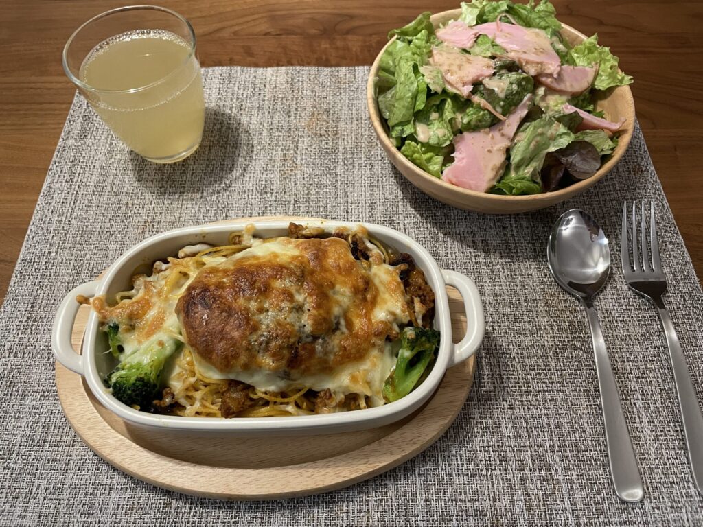 ハンバーグカレーパスタオーブン焼きでした