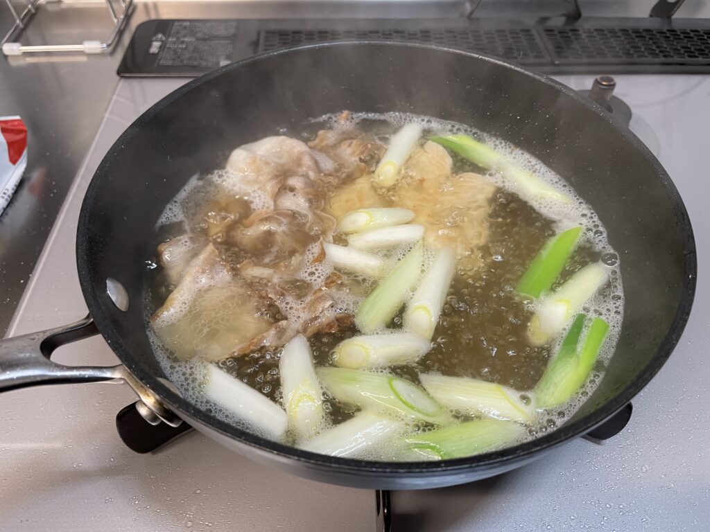 沸騰させて灰汁を取ります