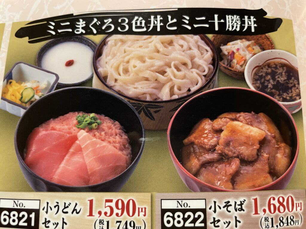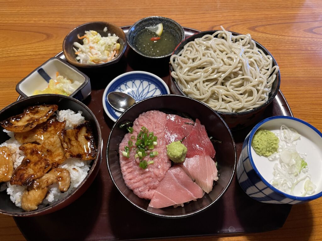 ミニまぐろ3食丼とミニ十勝丼(小そばセット)