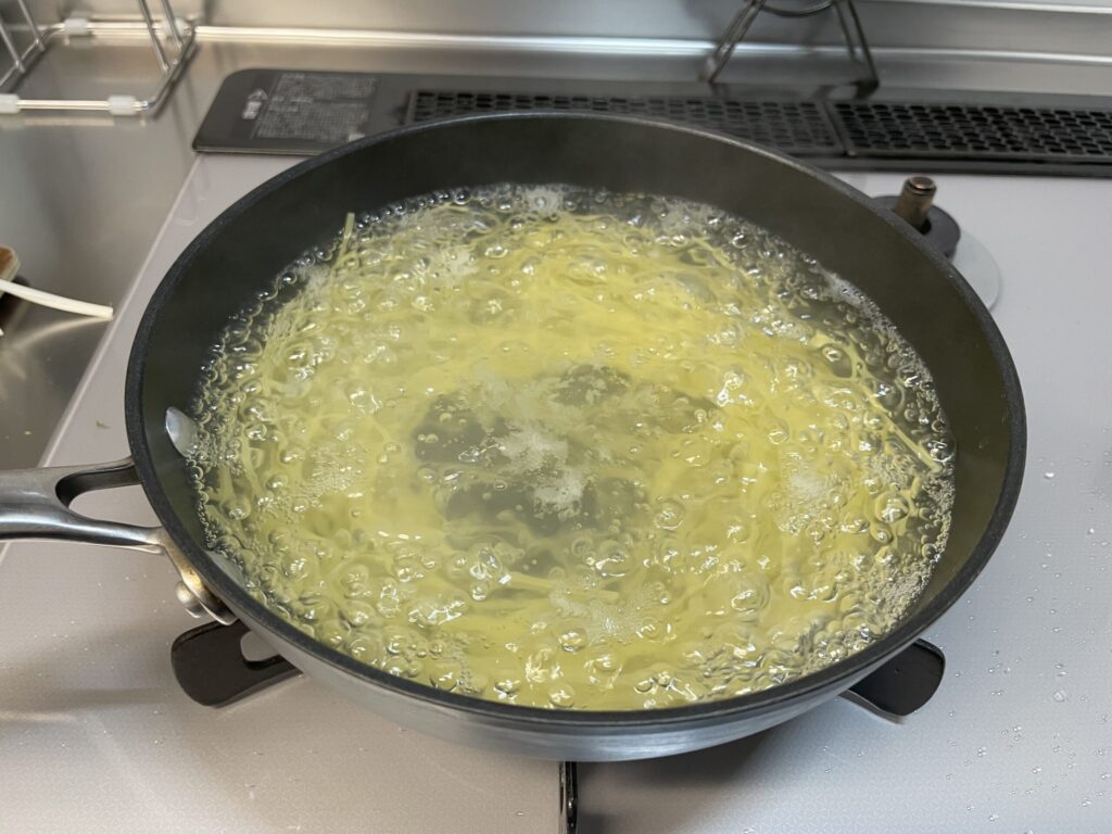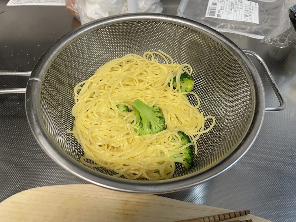 パスタを茹でて湯切り