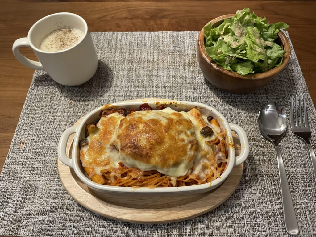 ハンバーグパスタオーブン焼き